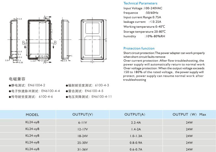 短路保護(hù):電源適配器在短路解除時(shí)能正常工作恢復(fù)